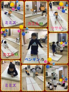 マットでは、動物の動き・・・連結能力🐸🐰🐧